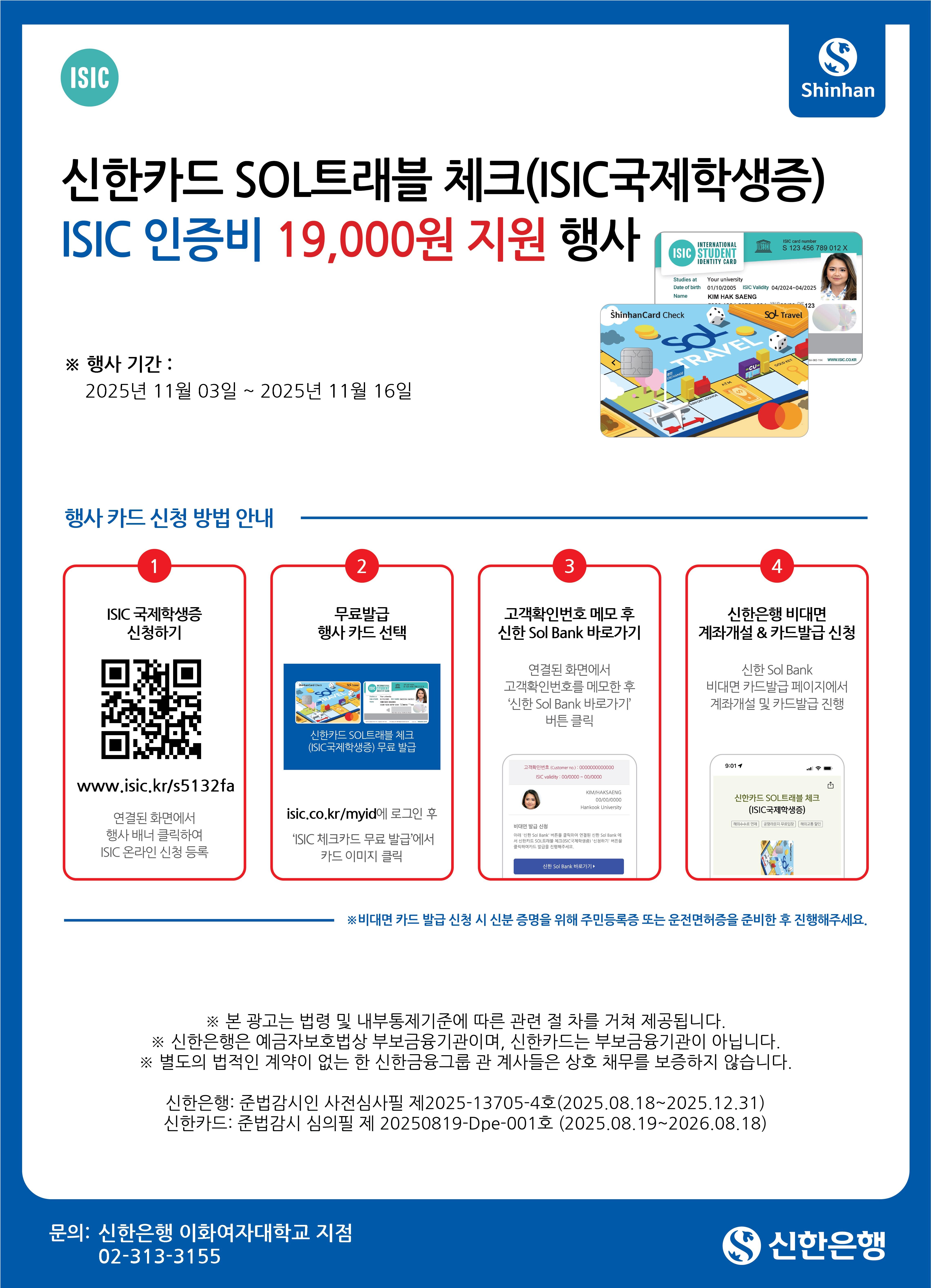 5. 발급비용 : 무료 (발급비 19,000원 신한은행 부담)