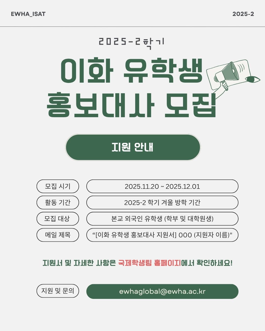2025-2학기 이화 유학생 겨울방학 홍보대사 모집