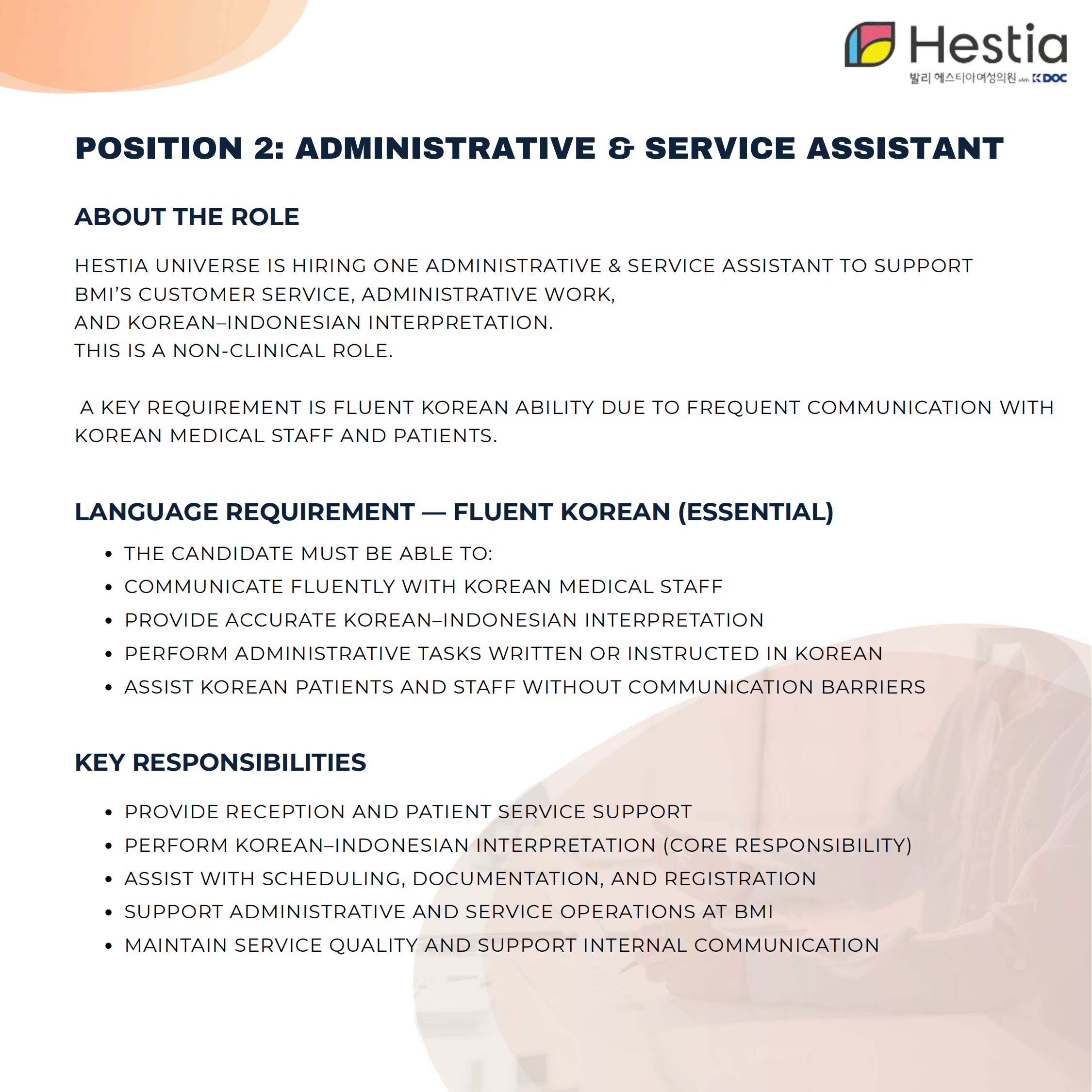 인도네시아 국적 유학생을 대상으로 한 간호 및 행정·서비스 분야 채용 안내