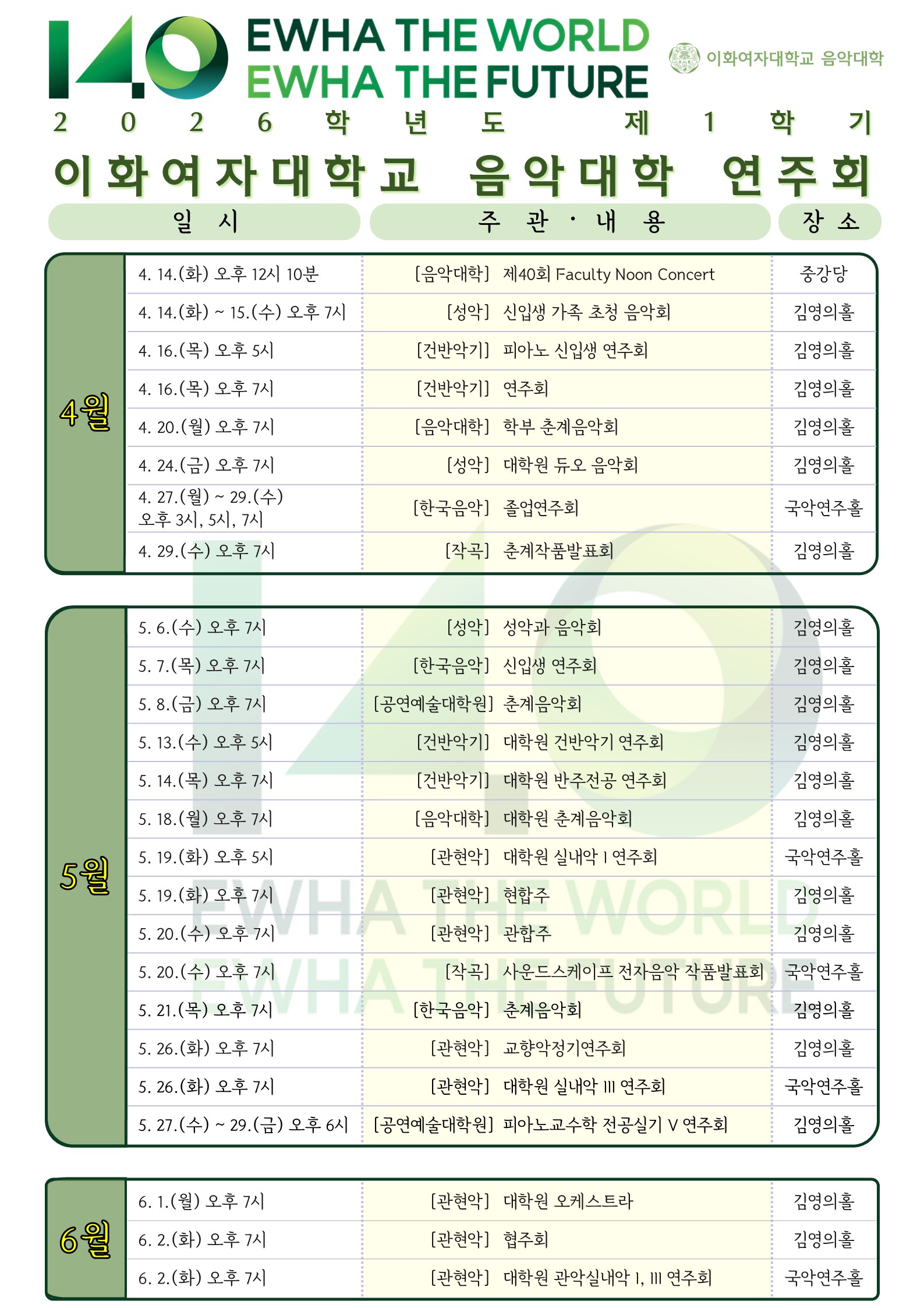 2026-1 음악대학 연주회 일정